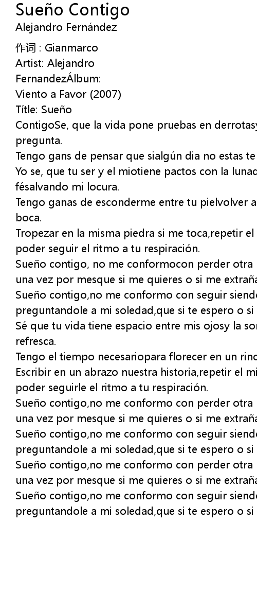 | Sue o contigo, no me conformocon perder otra ma anaandando a solas preguntando una vez por mesque si me quieres o si me extra as. | |