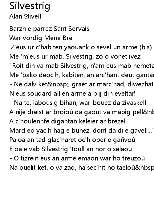 | "Roit din va mab Silvestrig, n'am eus mab nemetañ | |