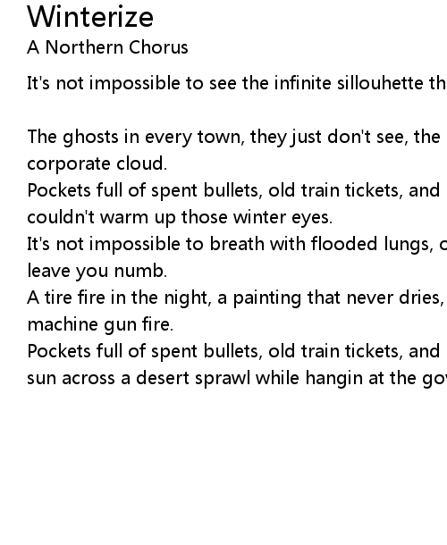 Pockets full of spent bullets, old train tickets, and pictures of the sun that couldn't warm up those winter eyes.