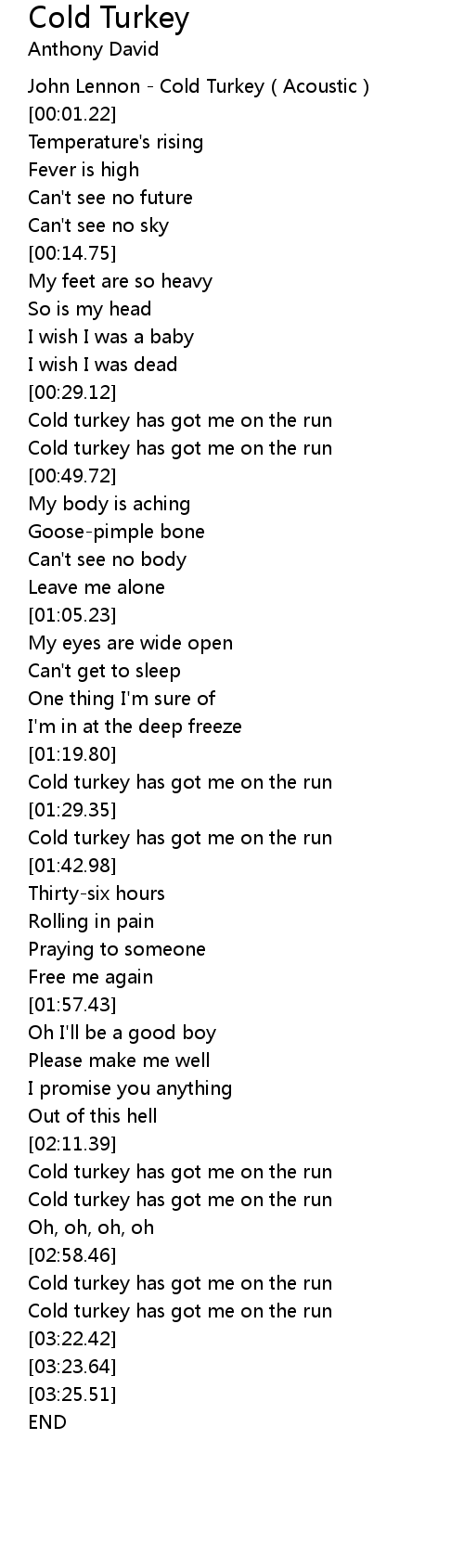 | [00:00.00] | John Lennon Cold Turkey Acoustic |