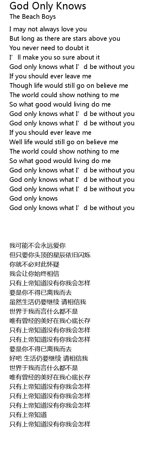 | [00:35.03] | God only knows what I' d be without you |