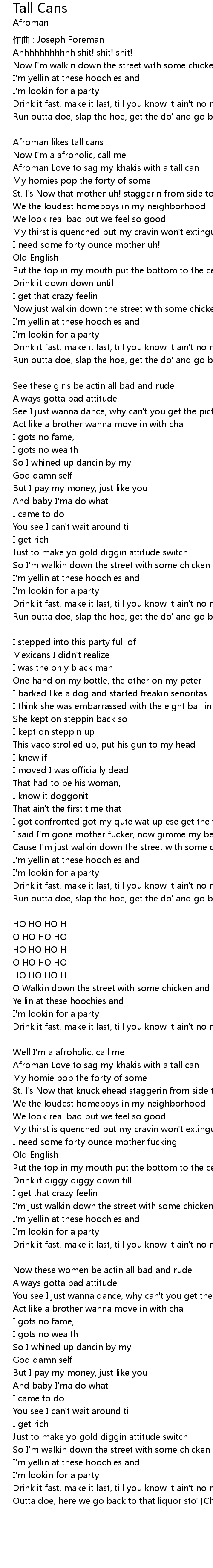 | Run outta doe, slap the hoe, get the do' and go back to that liquor sto' Chrous | |