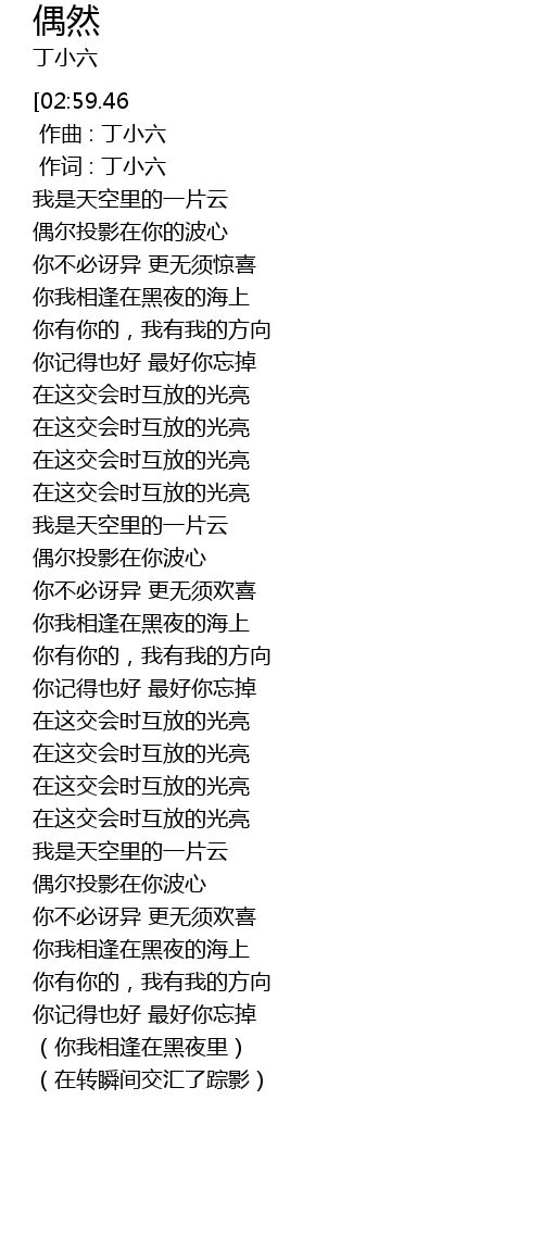 | [00:00.00] | zuò qǔ : dīng xiǎo liù |