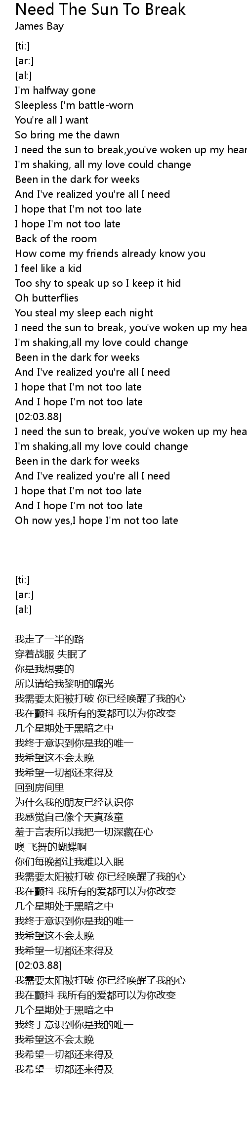 I need the sun to break,you've woken up my heart |