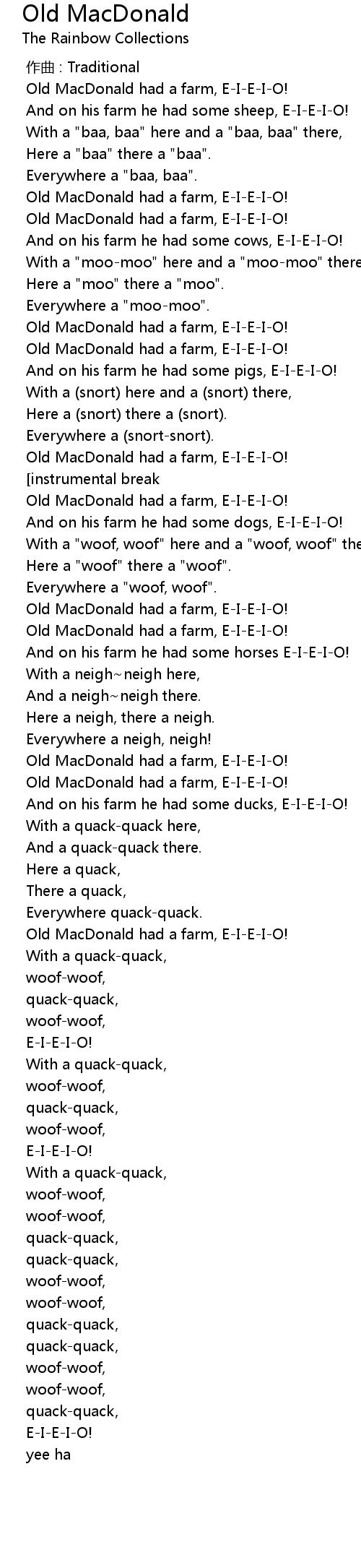 | 歌曲 | Old MacDonald |