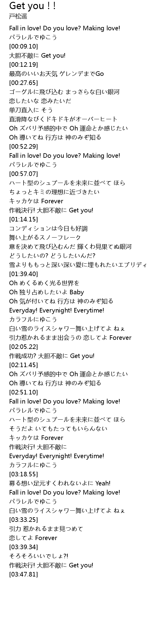 | [02:53.10] | Fall in love! Do you love? Making love! |