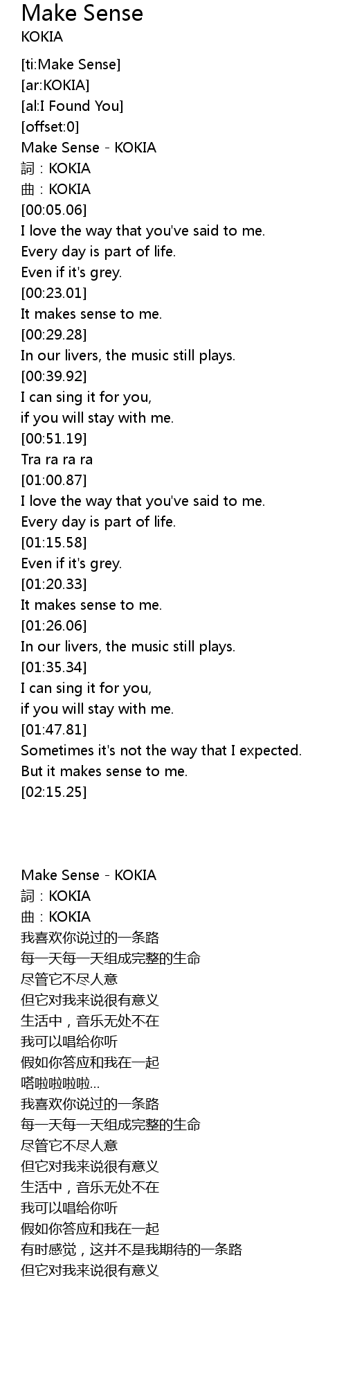 | [00:01.00] | Make Sense - KOKIA |