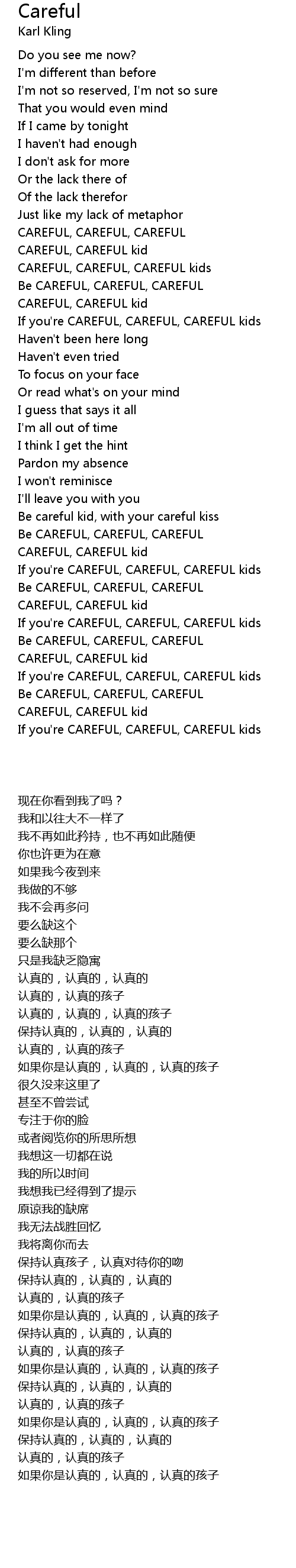 CAREFUL, CAREFUL, CAREFUL |