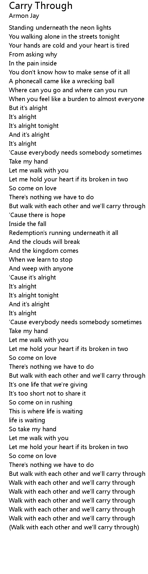 Carry Through 歌词