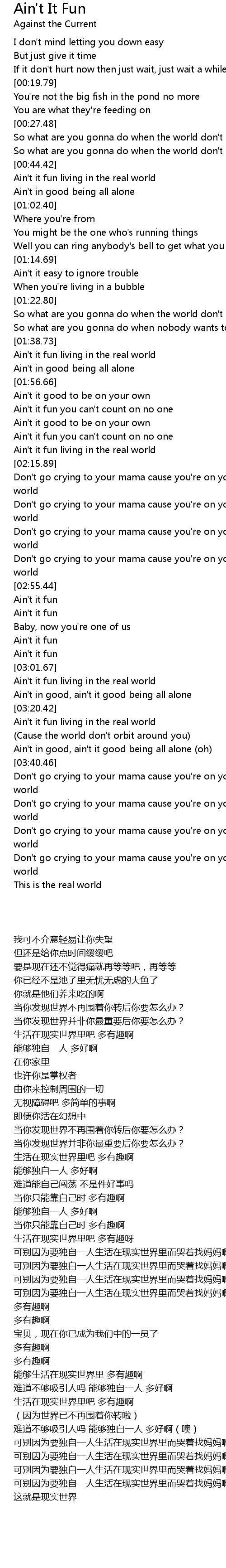 Don't go crying to your mama cause you're on your own in the real world |
