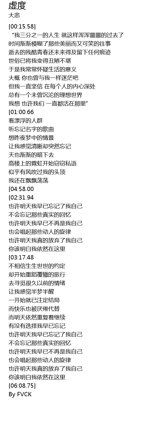 | [03:03.99] | 也许明天我真的放弃了我自己 |