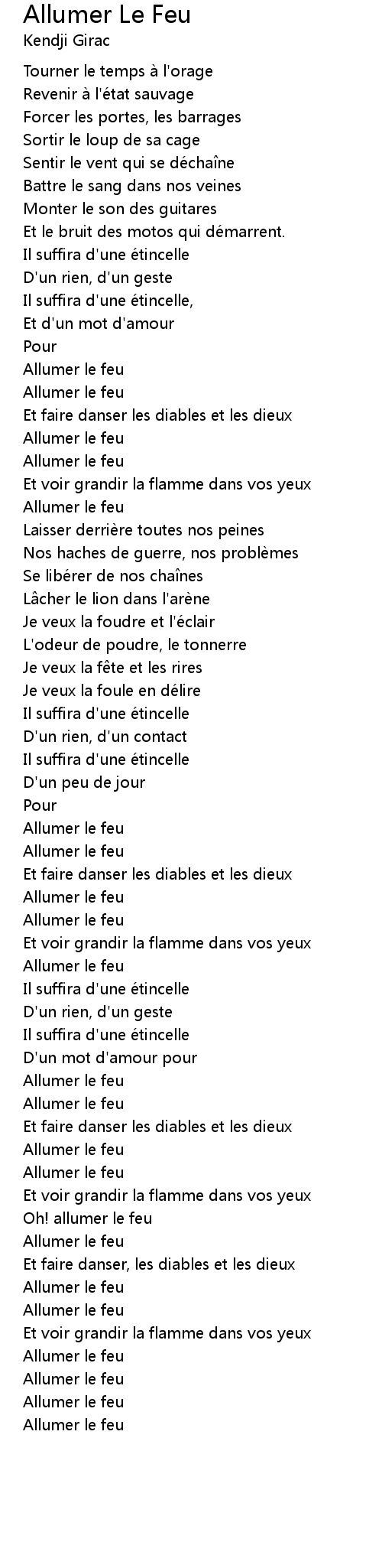 | 歌曲 | Allumer Le Feu |