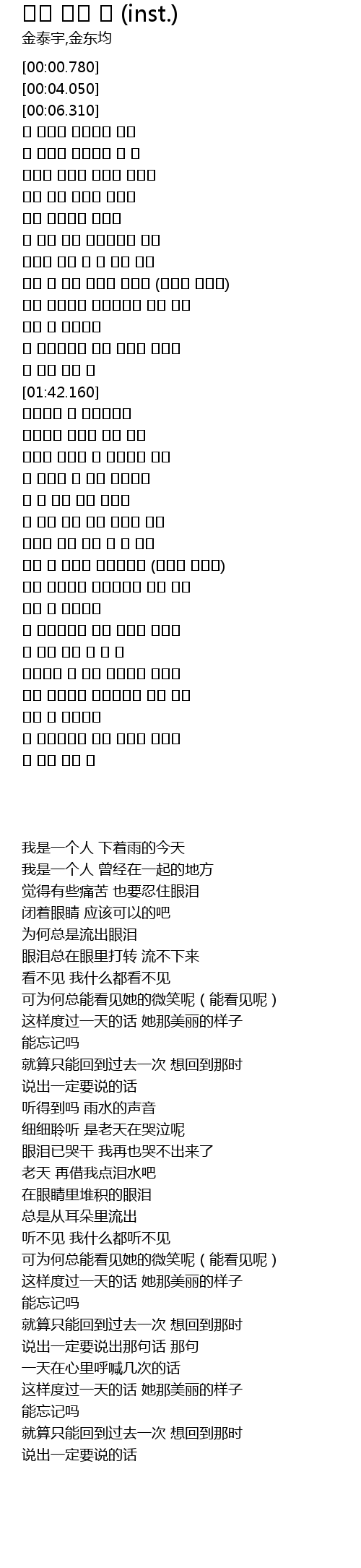 | [00:14.570] | 난 혼자죠 비내리는 오늘 |