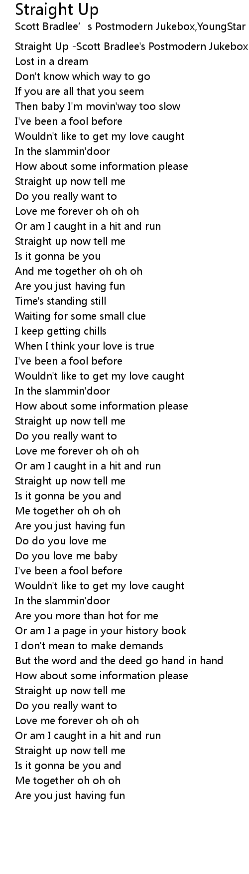 Straight up now tell me |