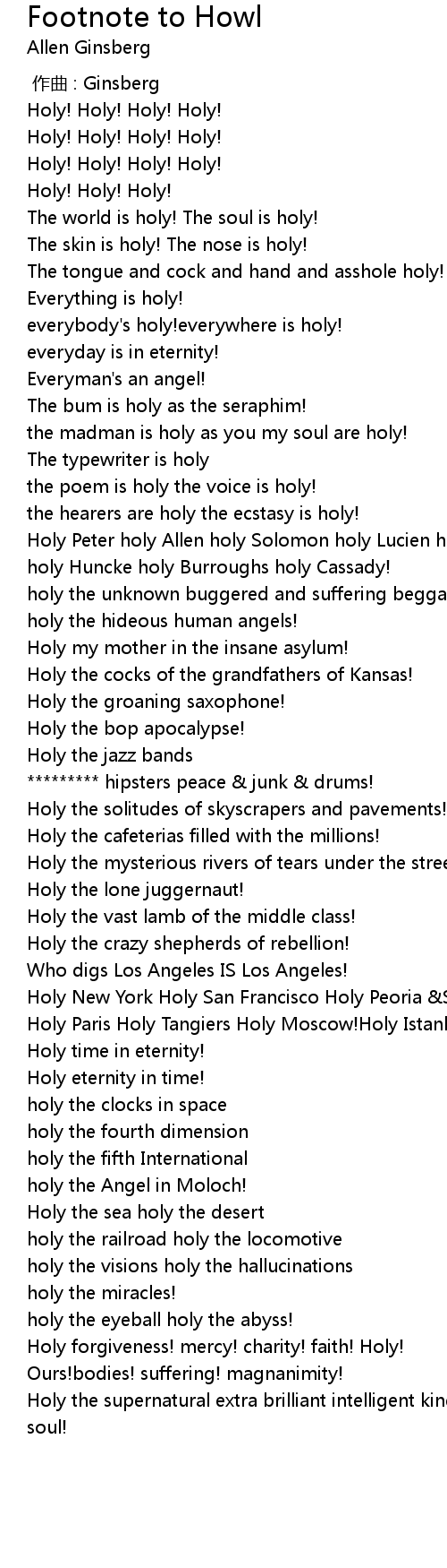 | [00:54.10] | Holy Peter holy Allen holy Solomon holy Lucien holy Kerouac |