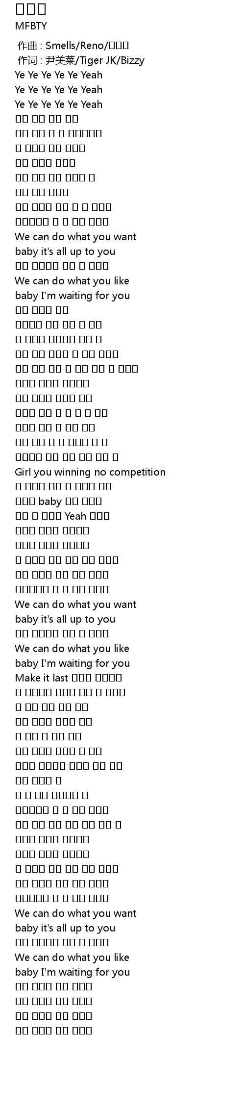 | [00:00.697] | 作词 : 尹美莱/Tiger JK/Bizzy |