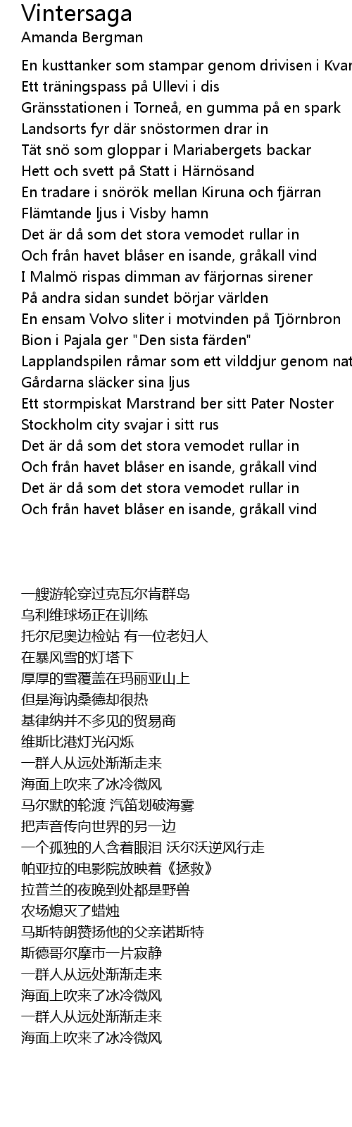 | 歌曲 | Vintersaga |