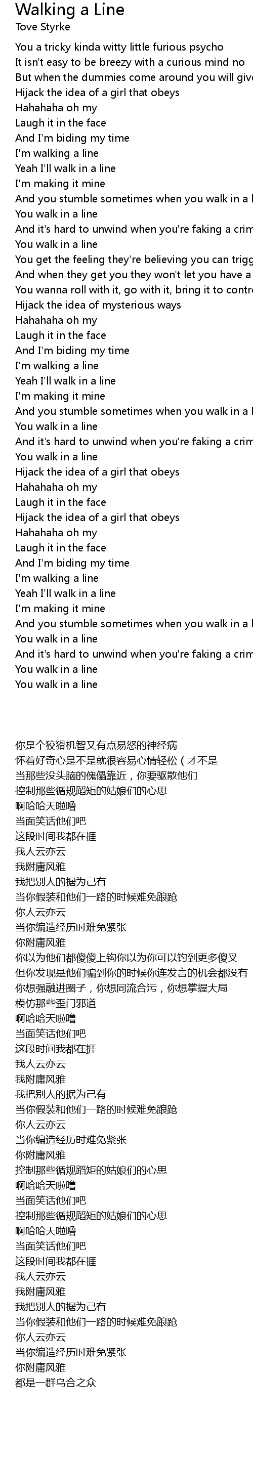 I'm walking a line |