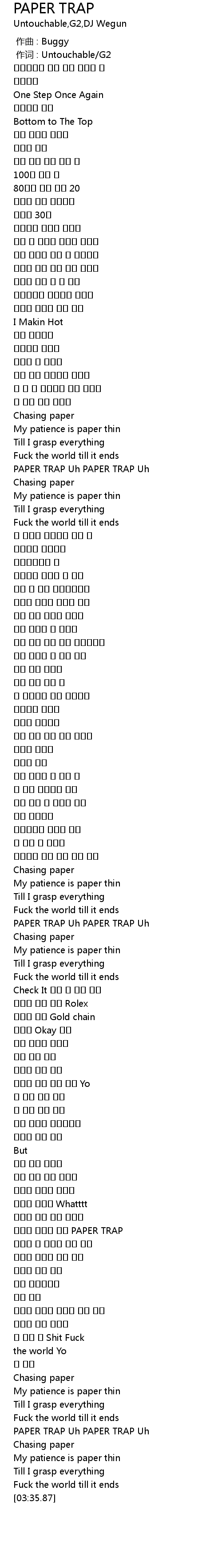 | [02:18.77] | PAPER TRAP Uh PAPER TRAP Uh |