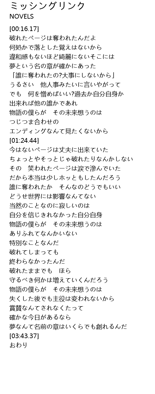 | [00:18.17] | 破れたページは奪われたんだよ |