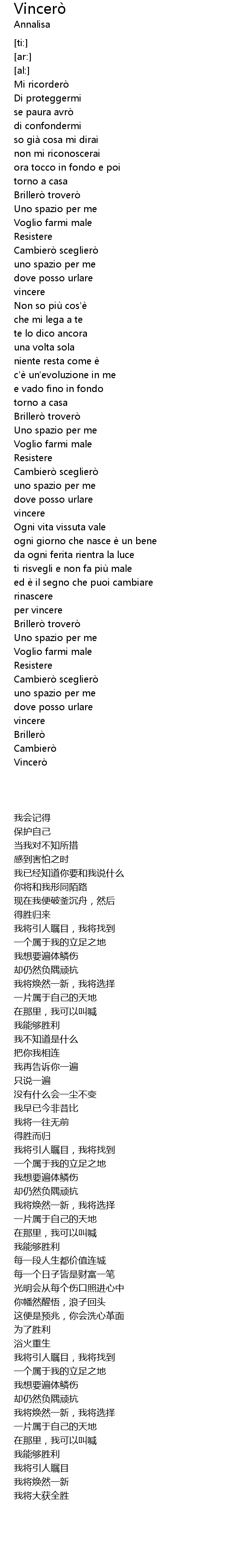 | [03:10.66] | Vincerò |