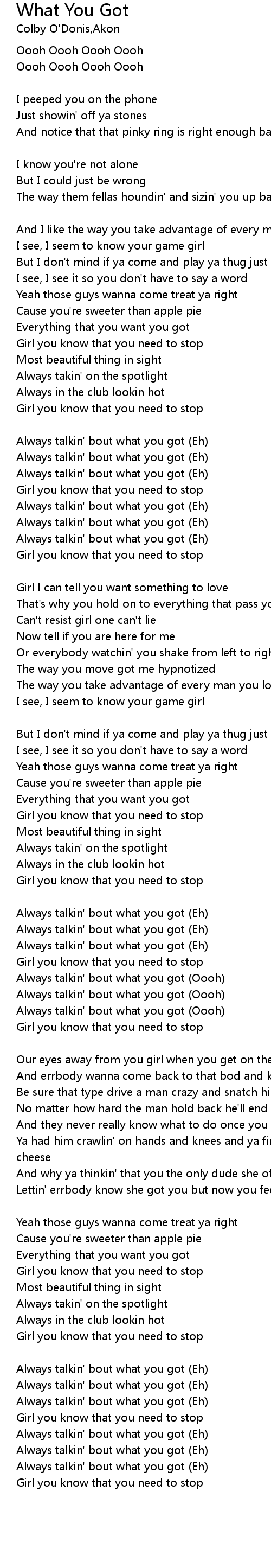 Always talkin' bout what you got (Oooh) |