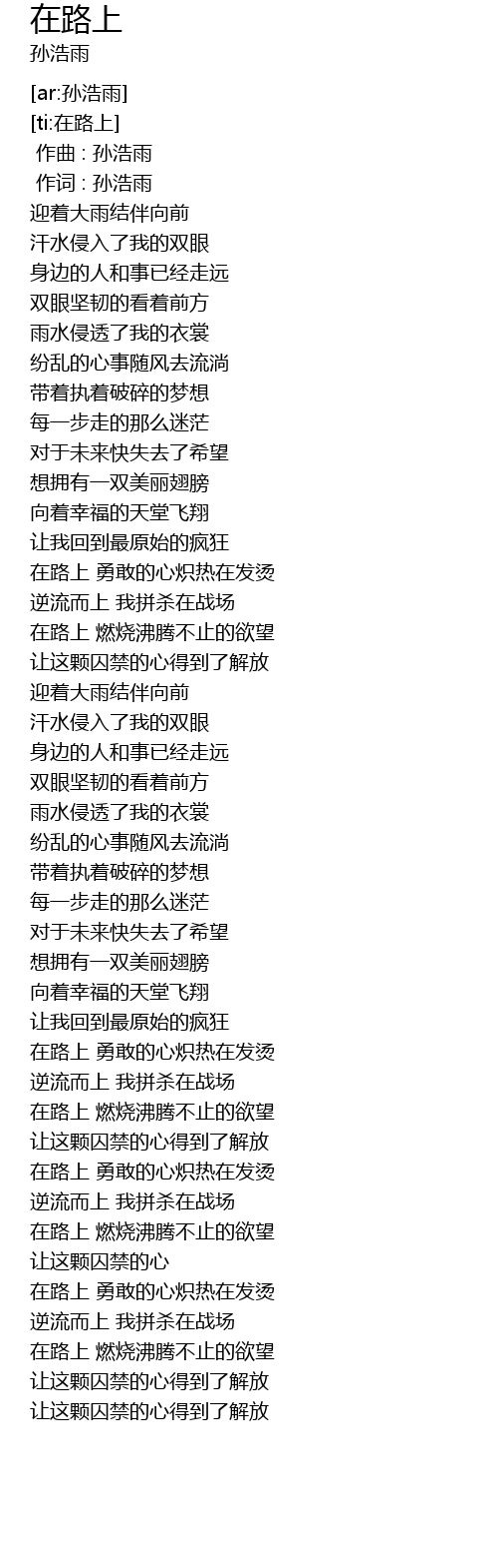 | [00:01.00] | 作词 : 孙浩雨 |