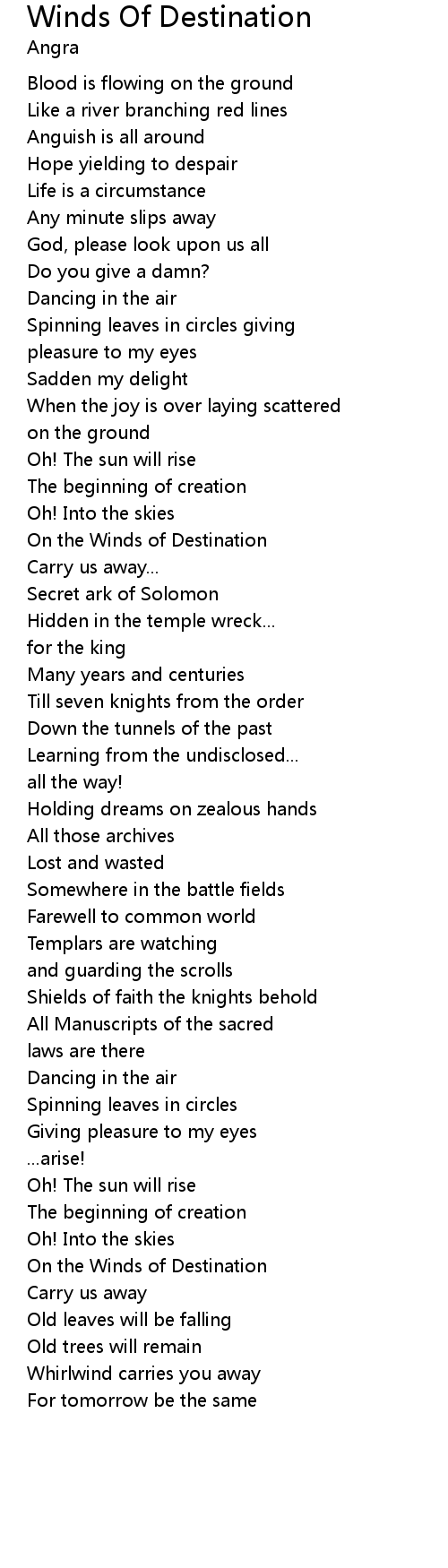 On the Winds of Destination |