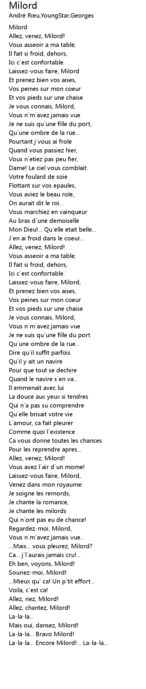 Milord 歌词