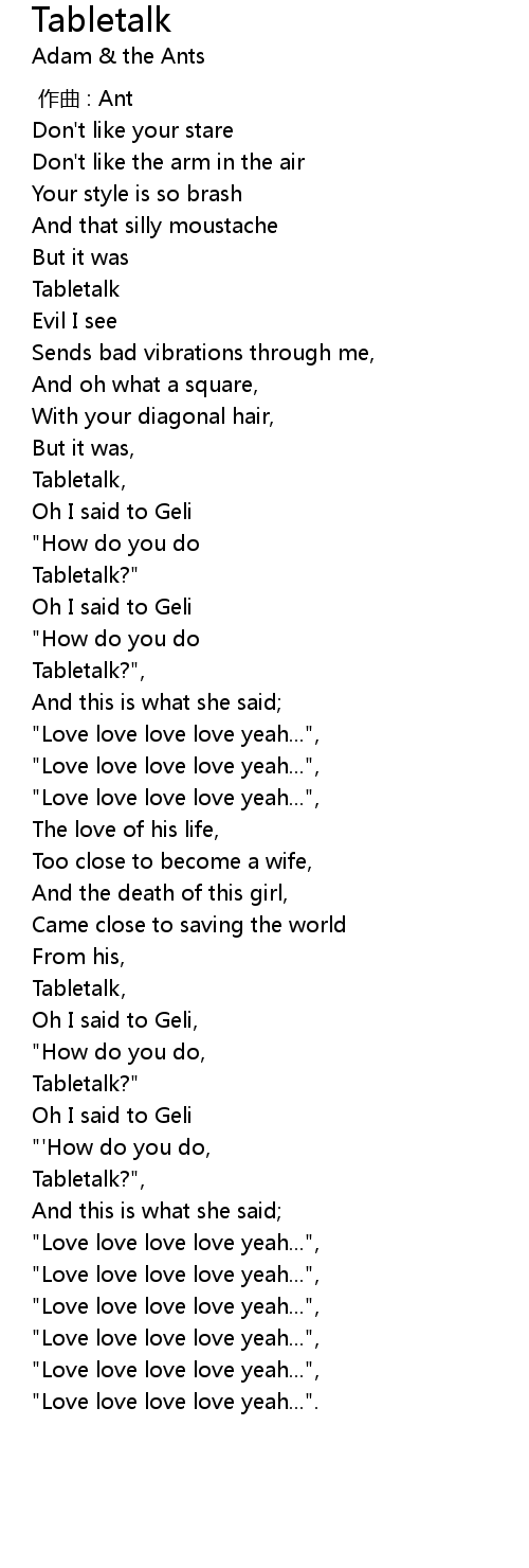 | [04:00.710] | Tabletalk?", |