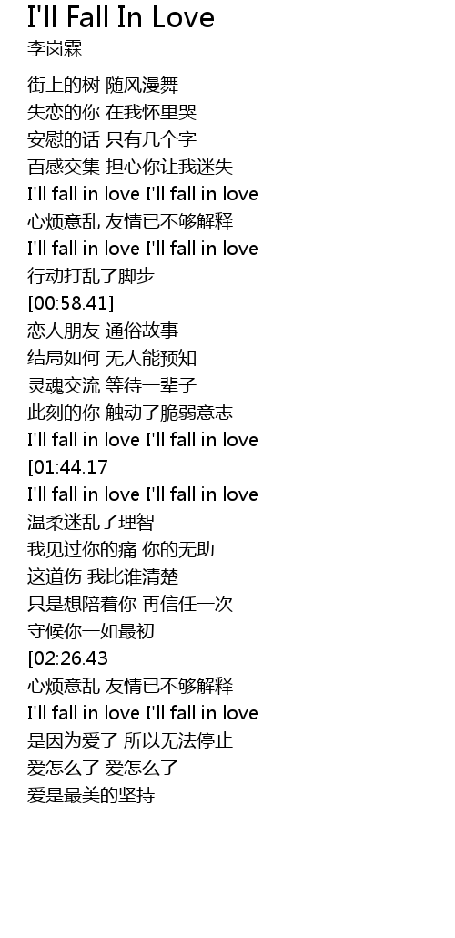 | [00:43.60] | I'll fall in love I'll fall in love |