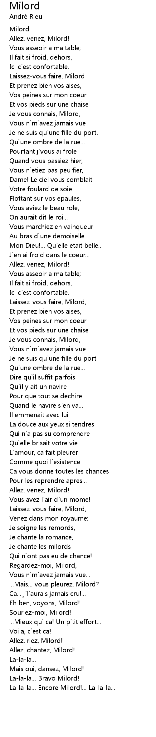 Allez, chantez, Milord! |