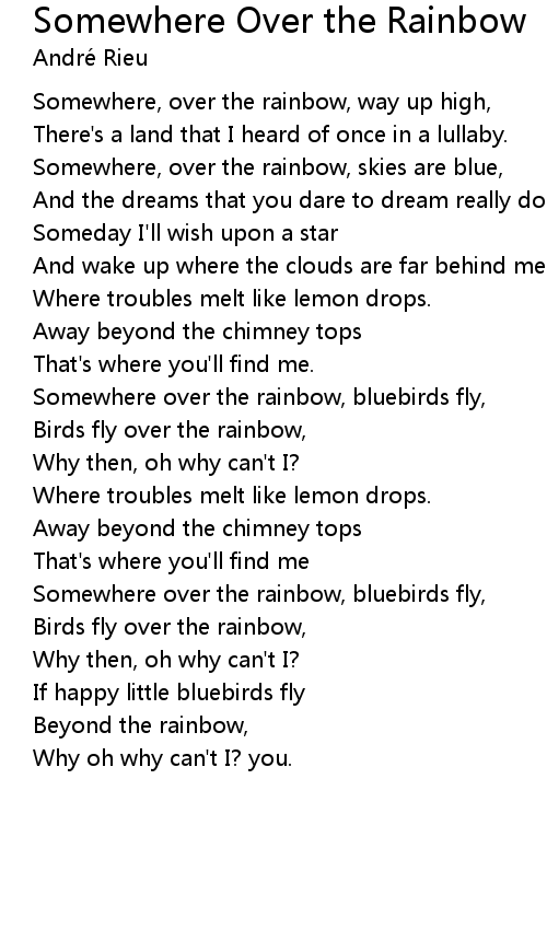 | Somewhere, over the rainbow, skies are blue, | |