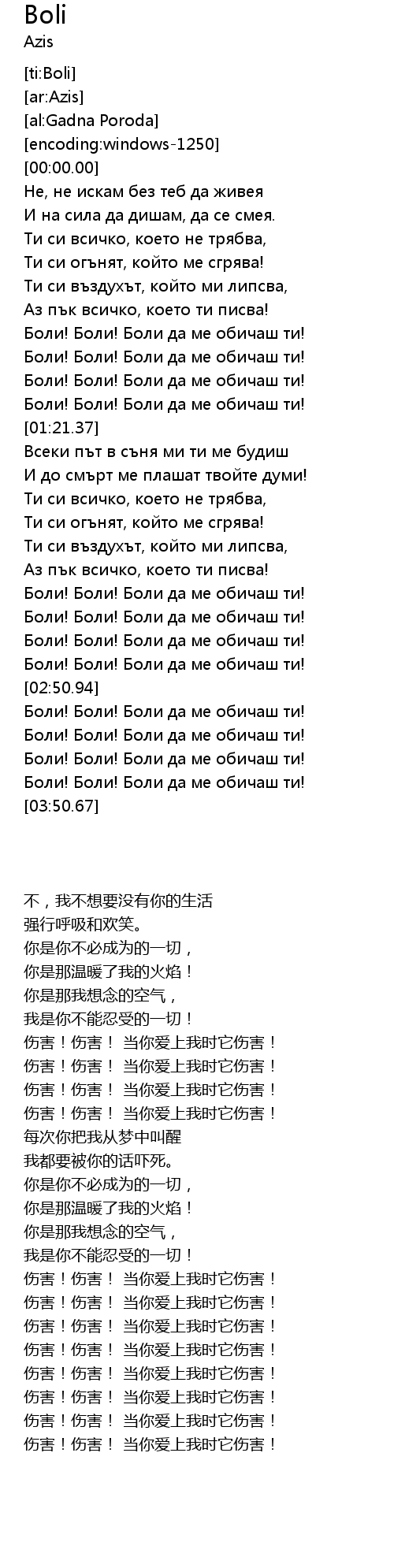 | [03:10.85] | Боли! Боли! Боли да ме обичаш ти! |