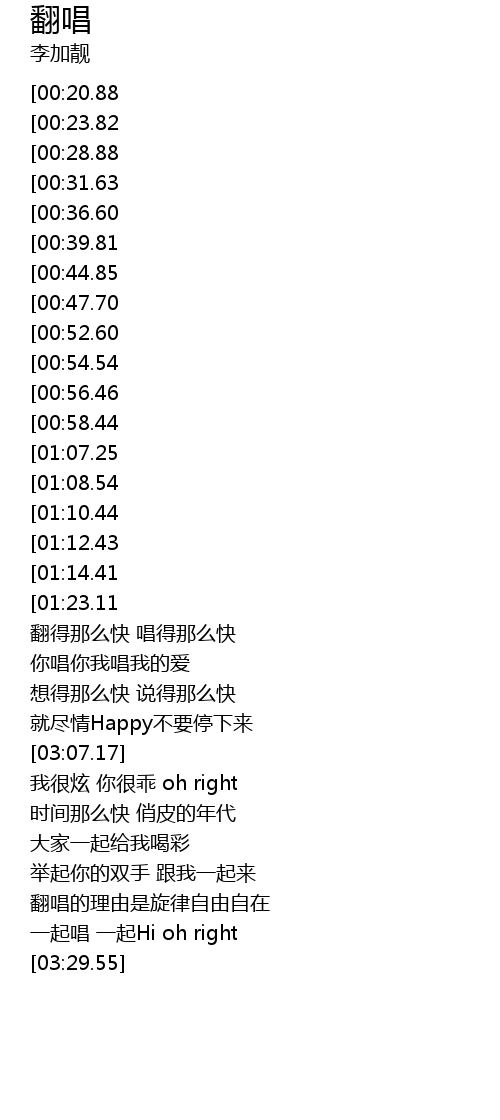 | [03:24.20] | 一起唱 一起Hi oh right |