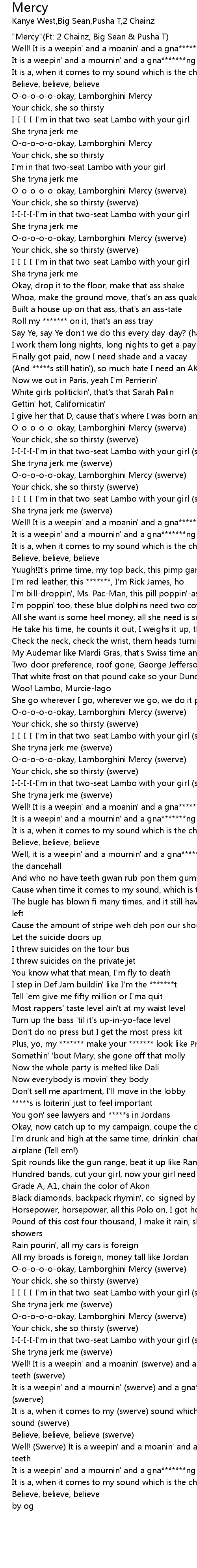 | [00:00.00] | "Mercy"(Ft: 2 Chainz, Big Sean & Pusha T) |
