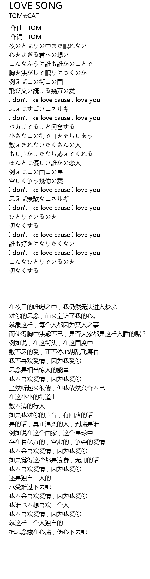 | [03:49.49] | I don't like love cause I love you |