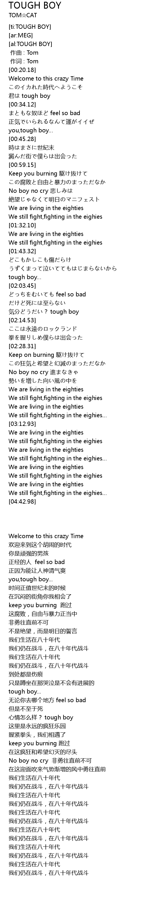 | [02:00.08] | tough boy |