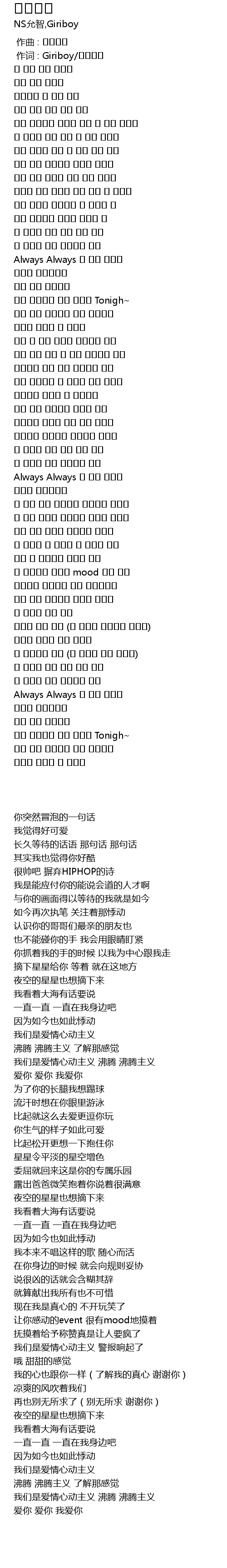 | [00:01.00] | 作词 : Giriboy/스타트랙 |