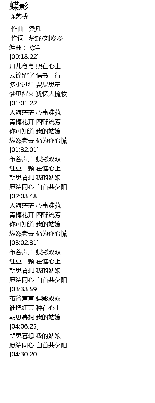 | [01:32.83] | 布谷声声 蝶影双双 |