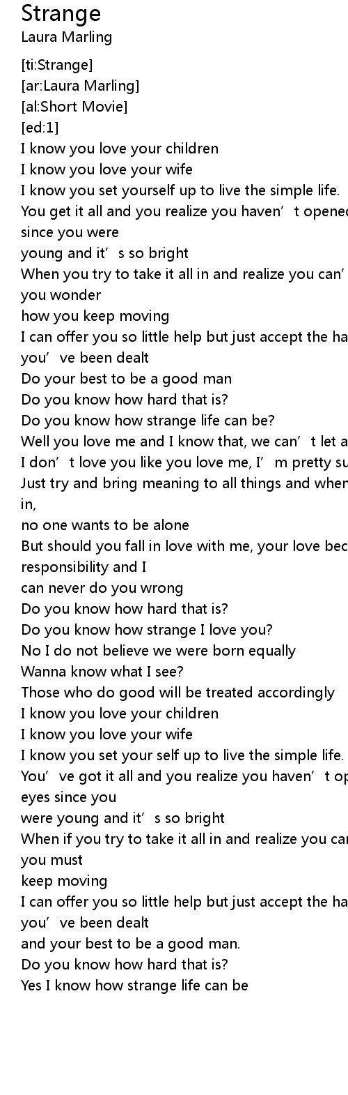 | [01:41.572] | Do you know how strange I love you? |