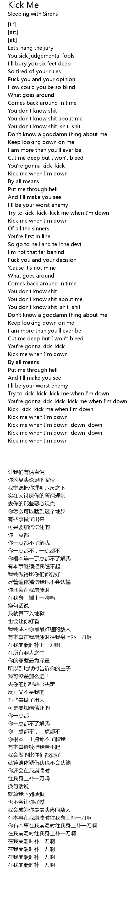 Kick kick kick me when I'm down |