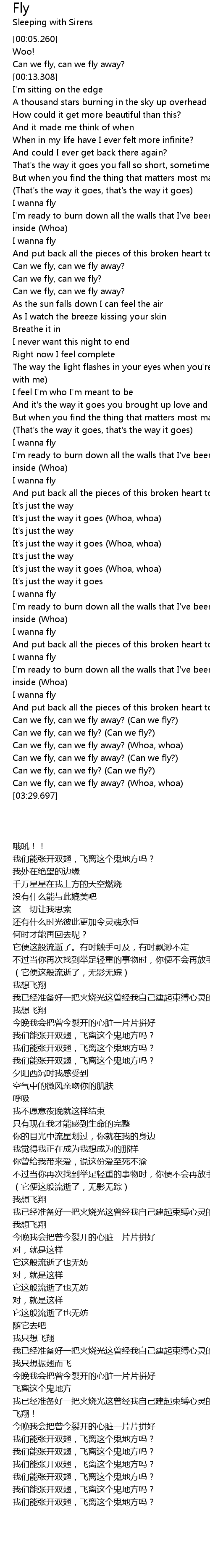 歌曲 Fly