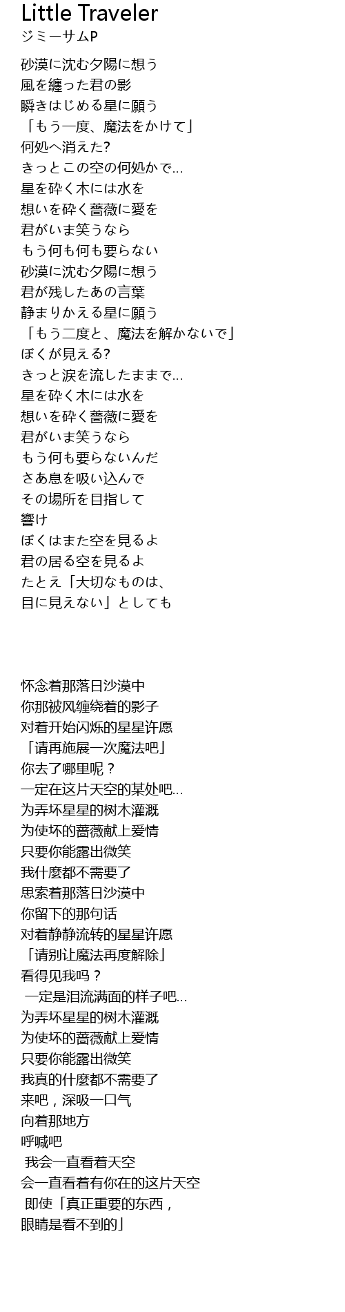 | [00:29.02] | 怀念着那落日沙漠中 |