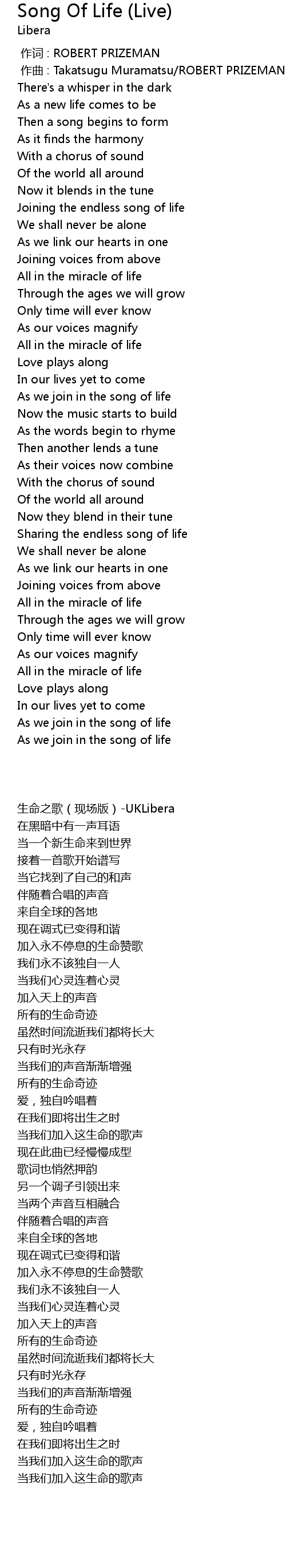 | [00:00.111] | 生命之歌(现场版)-UKLibera |