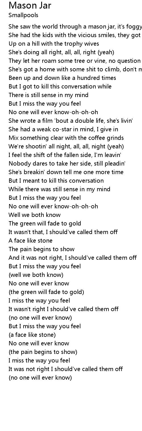 She saw the world through a mason jar, it's foggy |