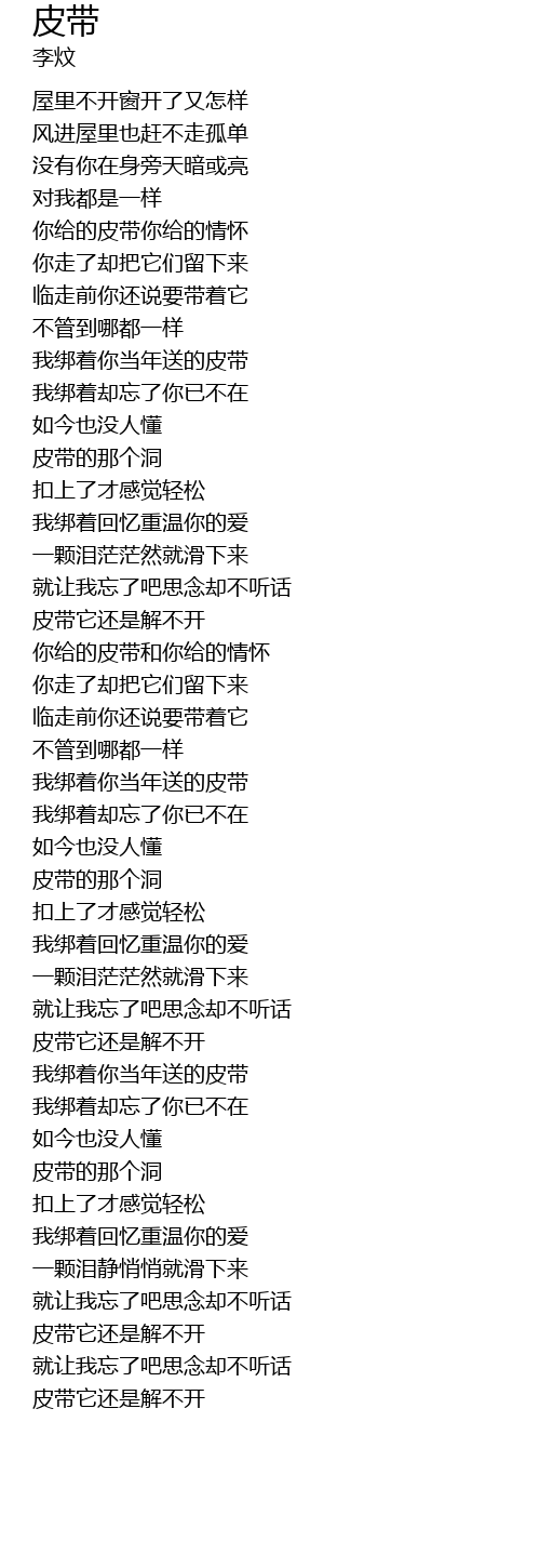 | [02:23.52] | 我绑着你当年送的皮带 |