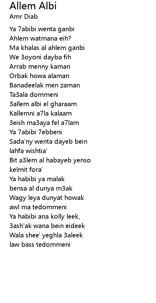 | Ya 7abibi wenta ganbi | |