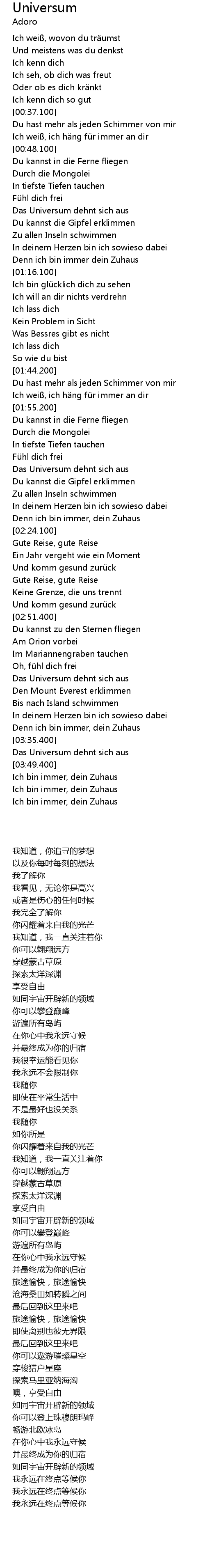 | [03:55.200] | Ich bin immer, dein Zuhaus |