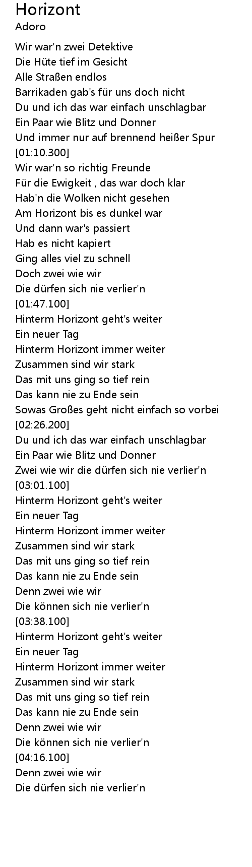 | [03:38.300] | Hinterm Horizont geht' s weiter |